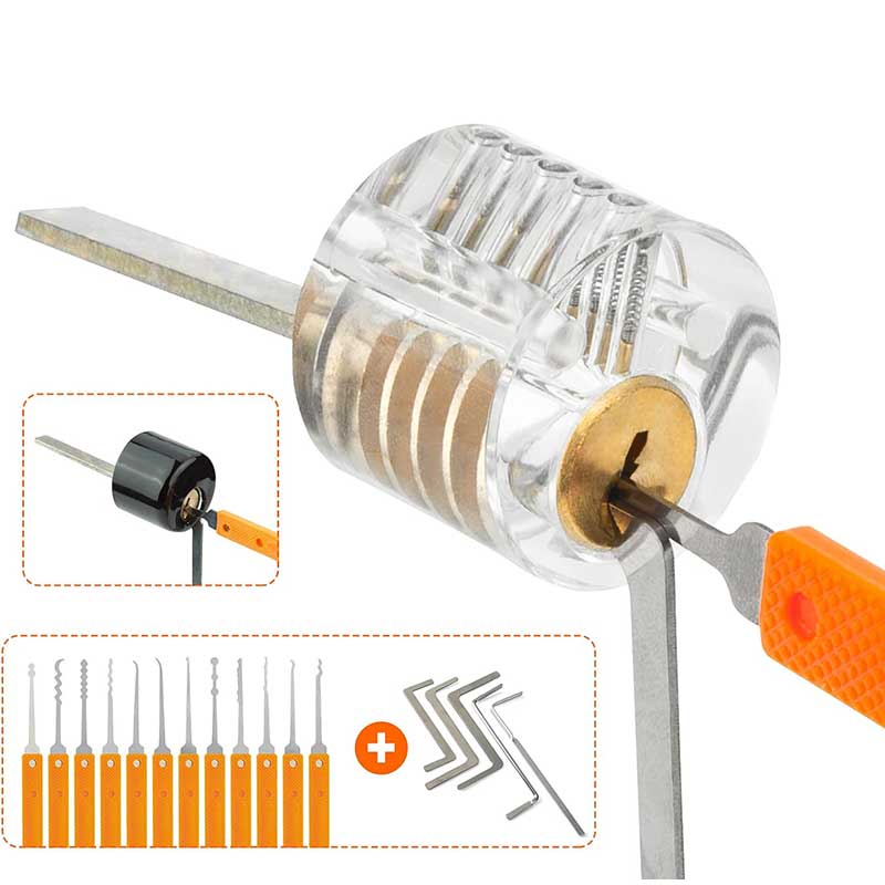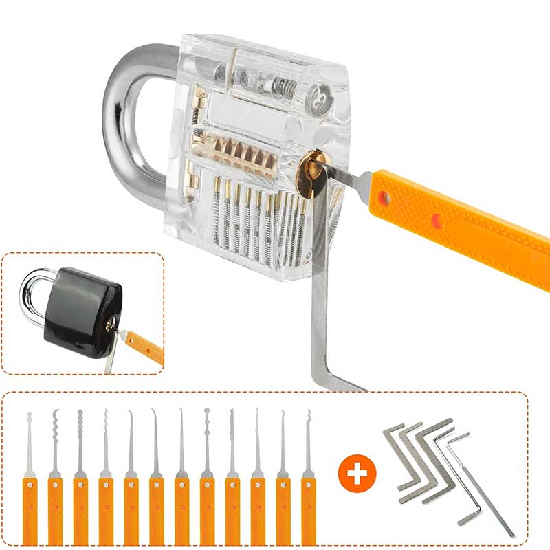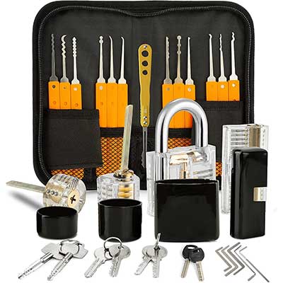 YOU'RE REVIEWING: 18 Pieces Lock Pick Set with 4 Transparent Practice Locks and Black Cover, Training Tools for Beginner and Locksmith
