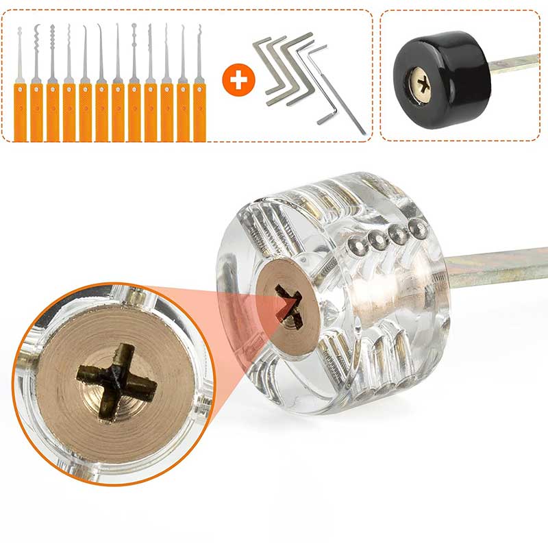 Transparent Design: The lock pick set contains 4 transparent training locks, lets you clearly see the operating mechanism of the lock core. Mastering different types of locks from level 1 to level 4 can better understand the principle of unlocking. When you train to a certain level, you can wear a black cover for blind training. Practice unlocking by feeling and hearing sounds for added fun and difficulty.