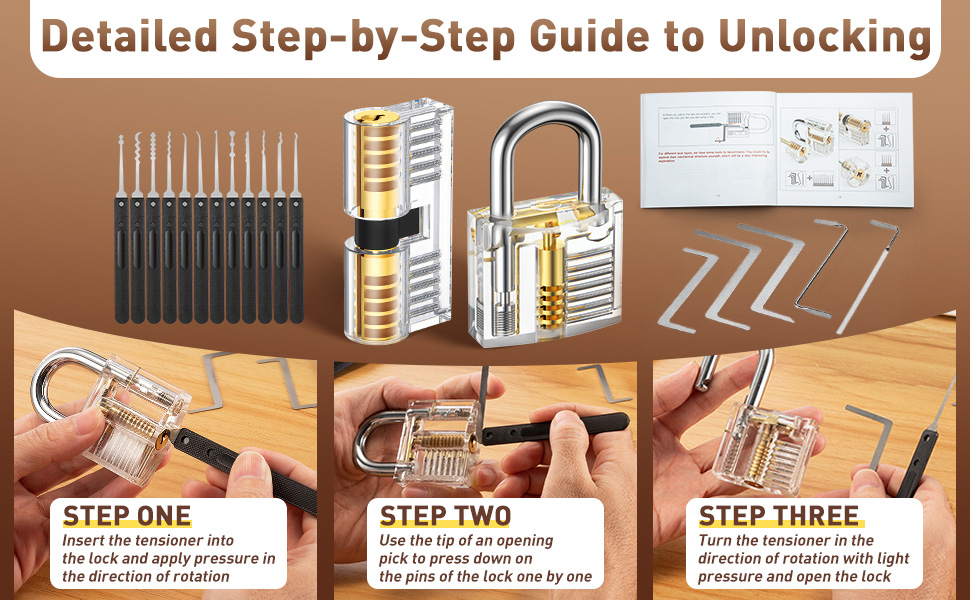 Transparent design allows you know exactly what you are doing when picking it. Clearly see how this mechanism works. It gives you an indication of the skill required to pick the lock.