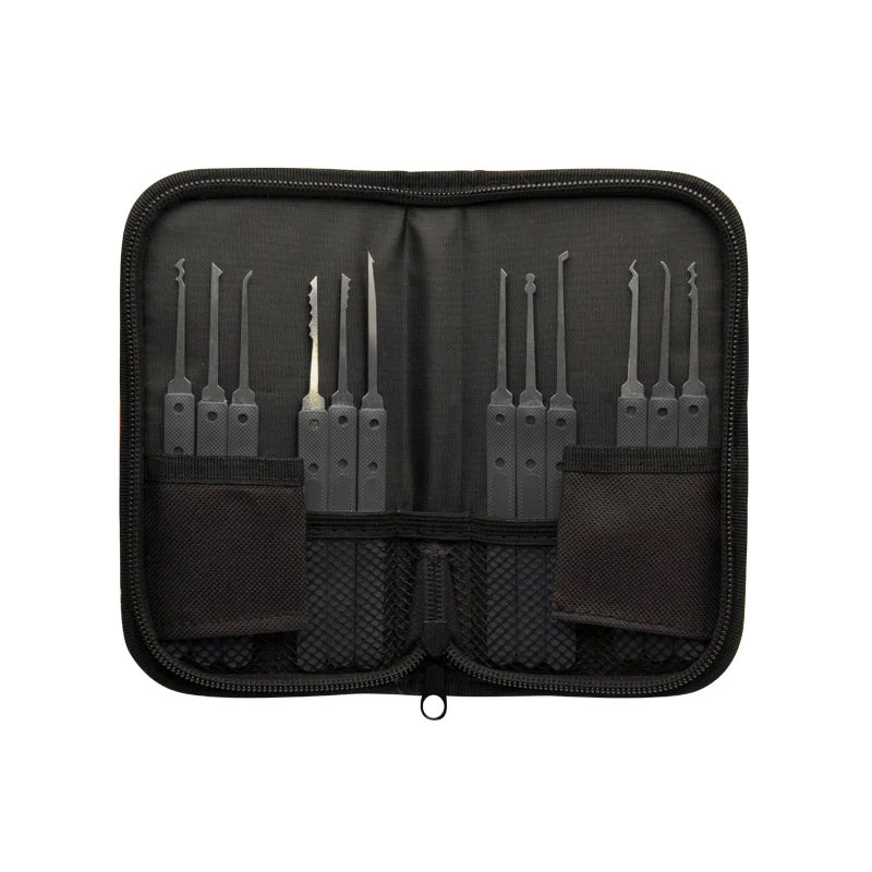 17 Pieces Lock Picks Set: This lock pick set includes 12 pieces of different types of picks and 5 pieces tension wrenches. All tools are made of good stainless steel. The picks with comfortable handles are easy to hold as picking locks. They can be placed well in the black portable bag.